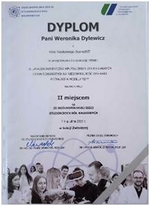„ANALIZA NUMERYCZNA WPŁYWU ZMIAN STRUKTURALNYCH STRUN ŚCIĘGNISTYCH NA NIEDOMYKALNOŚĆ ZASTAWKI MITRALNEJ W MODELU PSIM” zostały dostrzeżone przez komitet naukowy IX Ogólnopolskiej Sesji Studenckich Kół Naukowych (Szczecin, 7-8.12.2023 r.) i uhonorowane II miejscem spośród prezentacji w sekcji o tematyce zwierzęcej.