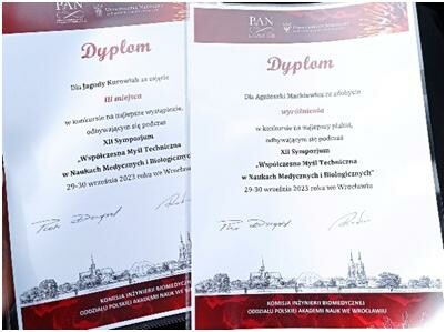 W dniach 29–30.09.2023 r. pracownicy Katedry Inżynierii Biomedycznej oraz absolwentki kierunku Inżynieria Biomedyczna uczestniczyli w XII Sympozjum „Współczesna Myśl Techniczna w Naukach Medycznych i Biologicznych” we Wrocławiu. Organizatorem wydarzenia była Komisja Inżynierii Biomedycznej Wrocławskiego Oddziału Polskiej Akademii Nauk.